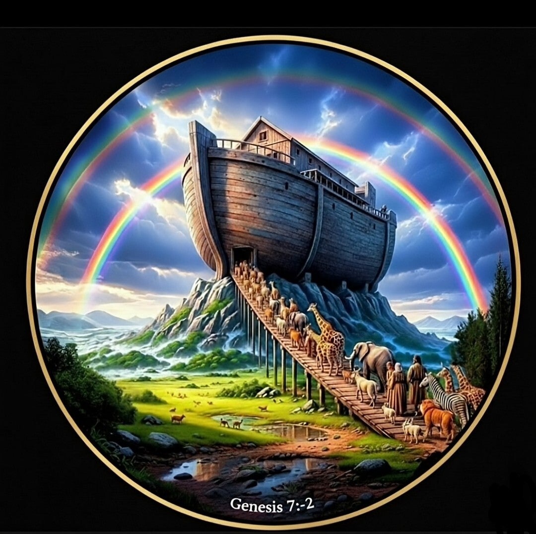 Inspiring Design: Features Noah's Ark, the rainbow covenant, and the biblical citation Genesis 7:2—a perfect conversation starter and a constant reminder of promise and preservation.
